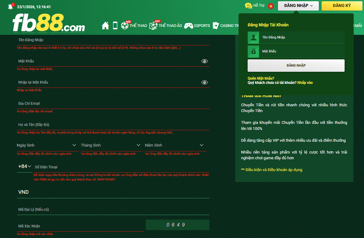 Người chơi thực hiện đăng ký theo các bước sau: